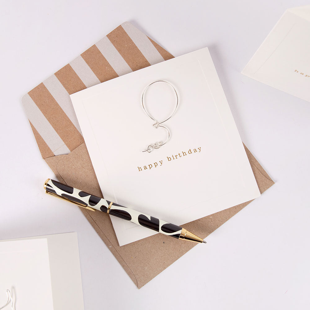 Part of our new 30th Birthday range, celebrating three decades of Caroline Gardner, this wonderful wire balloon card is perfect to celebrate their birthday in style. Made with shaped wire and with gold foil embossed lettering this card really is a little bit special.