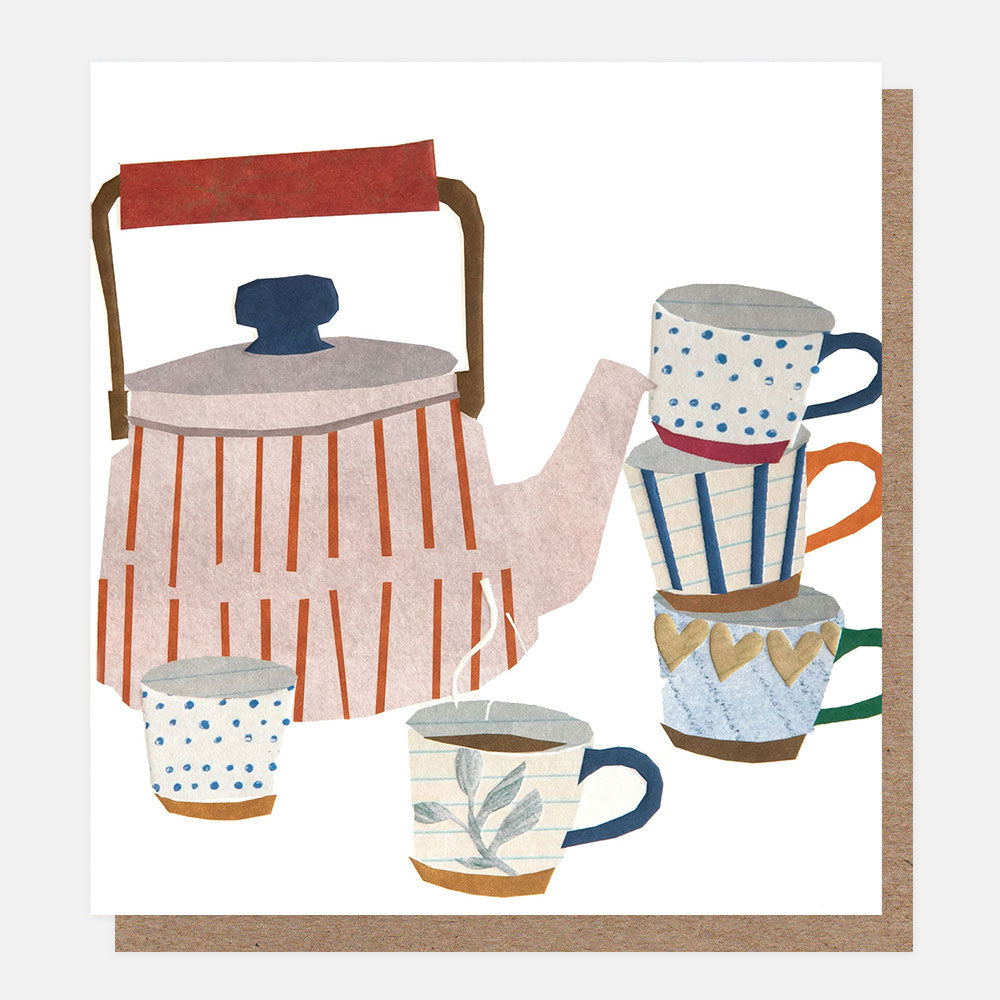Part of our new Paper Collage range, this beautiful everyday card features a teapot and colourful patterned teacups and is left blank on the inside for you to add your own personal message.