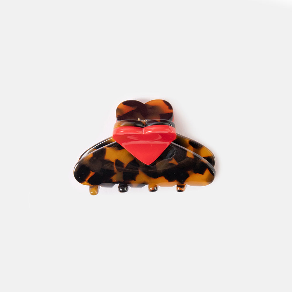 Add some love to your look with this gorgeous red heart and tortoiseshell hair claw. Made from a durable resin with 18k gold plated steel spring, this mini clip will keep your hair safely secured and looking fabulous.