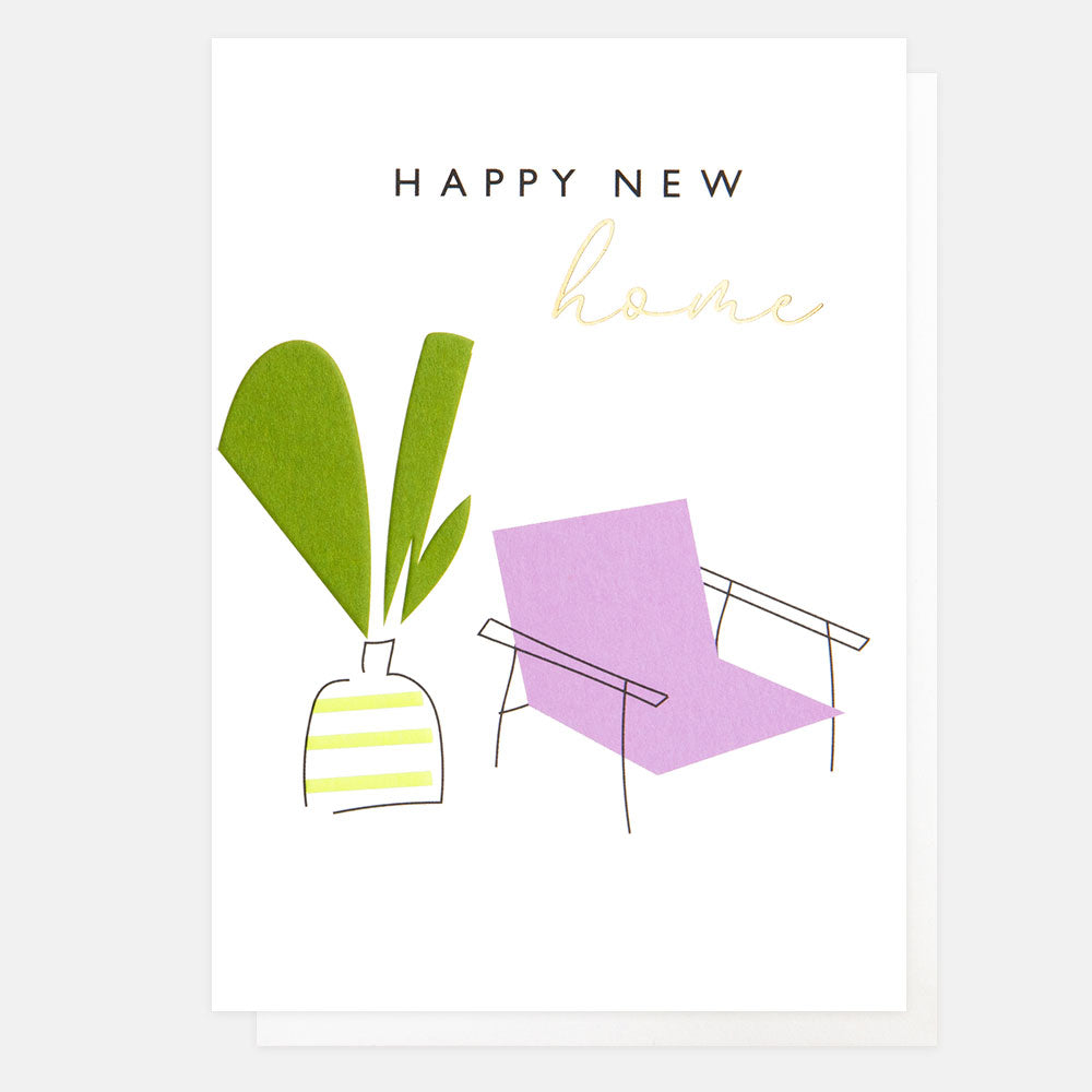 Part of our new Line Work range this cute chair & house plant card is ideal to say congratulations on their new home. Featuring gold foil and embossing for that extra special touch.