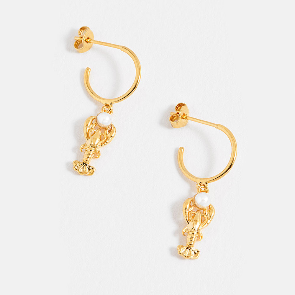 Add a playful touch to your look with these gorgeous gold lobster earrings. Featuring gold plated hoops with a gold lobster charm and faux pearl, a fun & stylish addition to any outfit.