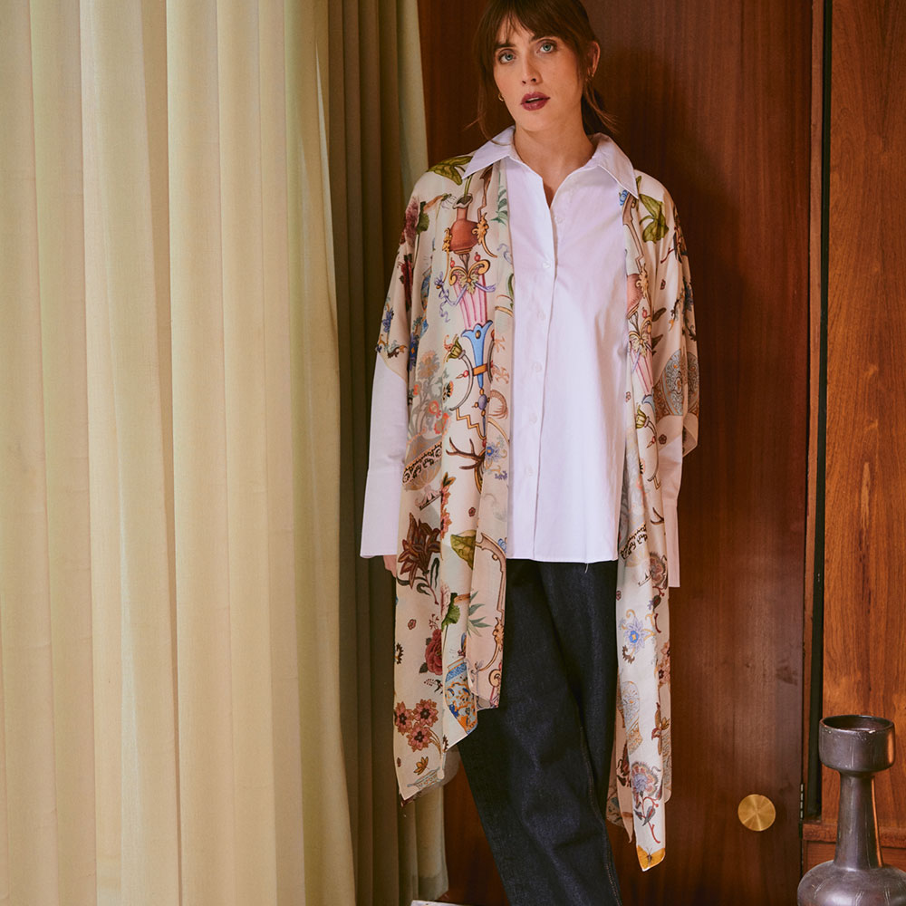 Abstract Blooms Silk Short Kimono