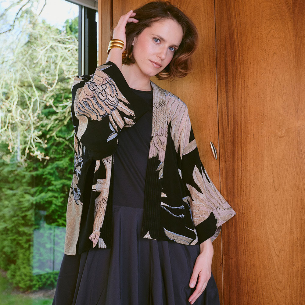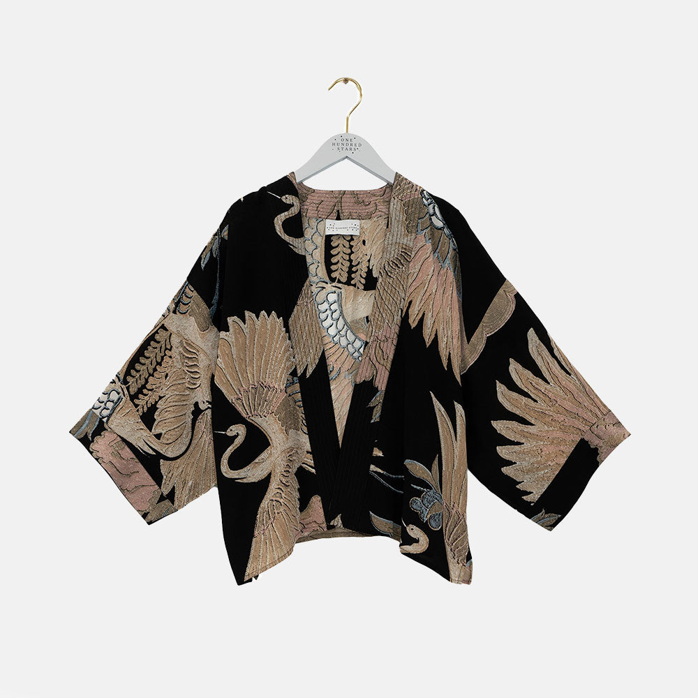 Black Crane Short Kimono