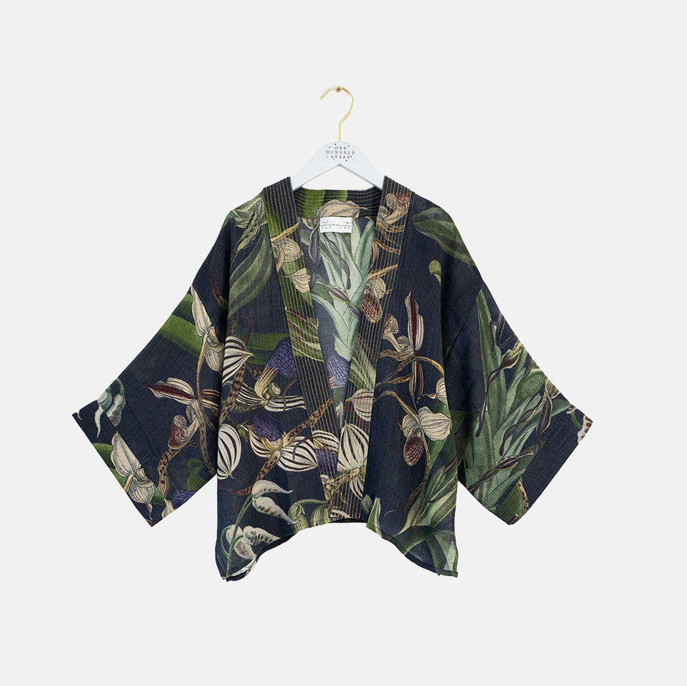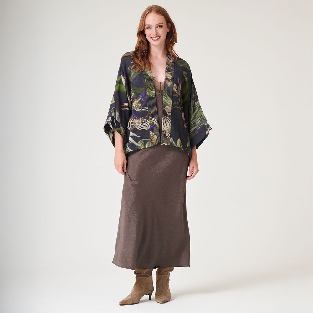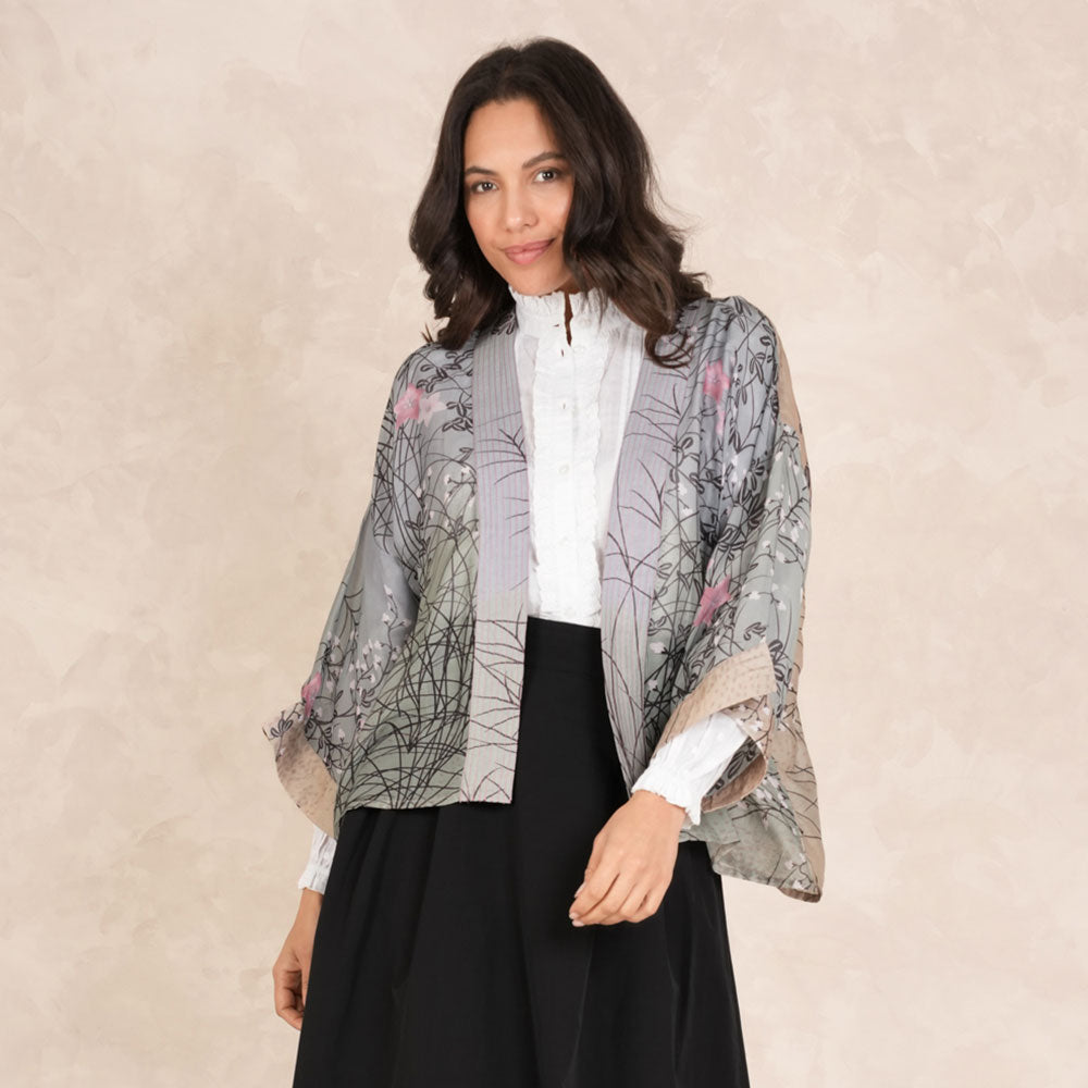 Charcoal Bloom Short Kimono